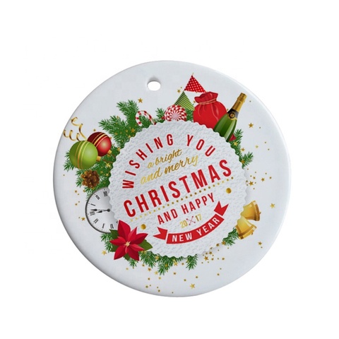 زينة عيد الميلاد الكريسماس المسطحة المصنوعة من السيراميك بتصميم دائري مخصص بالتبخير بحجم 3 بوصات